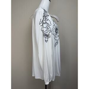 Style & Co Top Size 3X White Black Floral Embroidered Long Sleeve Tassel Cottage
