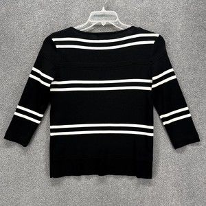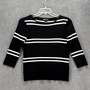 Style & Co Top sweater Woman Small S Black white stripe stretch knit round neck