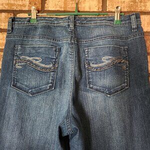 Style & Co. Tummy Control Straight Leg Jeans Dark Wash NWOT. Rhinestone accent on back pockets.