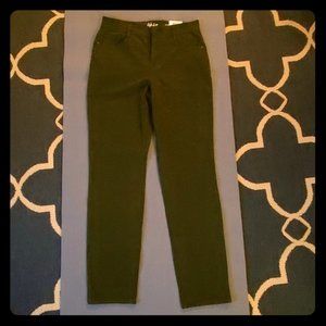 Details: zipper and button closure, high rise, slim leg, 2 back pockets with tonal embroidery, front control panel to smooth/flatten stomach, machine washable