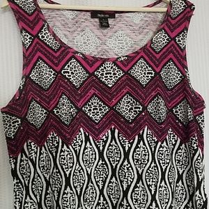 Sleeveless tunic, hot pink black and white with sequin embellishments, no known flaws, very good condition