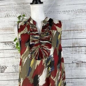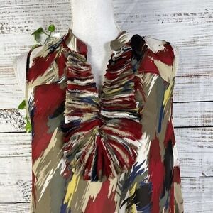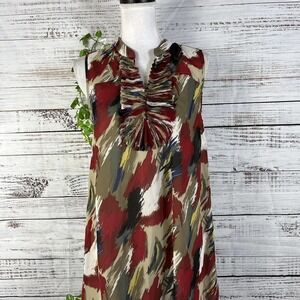 Style Co Tunic Dress size 6 Red Blue Khaki Ruffle Boho Wedding Cocktail Sheer