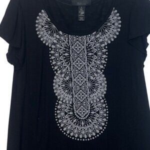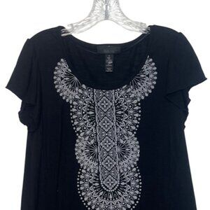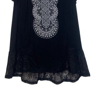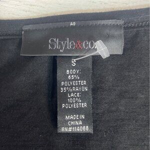 Style & Co Tunic Top Womens Small Black White New WOT Lace Hem