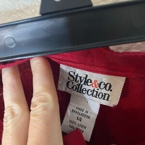 Style & Co Vintage Cherry Red 100% Linen Wide Leg Trouser Pants Size 14