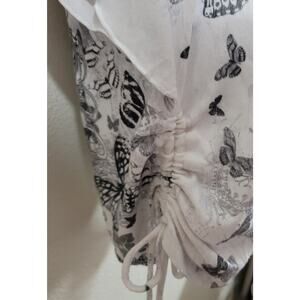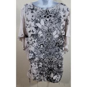 Style & Co White Black Gray Floral Butterflies Sequin Top Large Batwing Sleeves