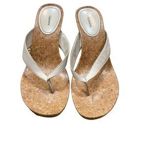 Style & Co White Leather Wedge Flip Flop Sandals Size 9.5