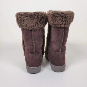 Style & Co Witty Suede Winter Boots Brown Faux Fur Women Size 6 Slip On Snow