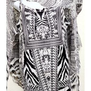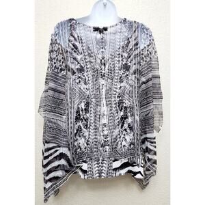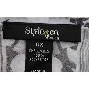 Style & Co. Woman Black Gray White Abstract Print Sheer Overlay With Cami Top 0X
