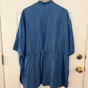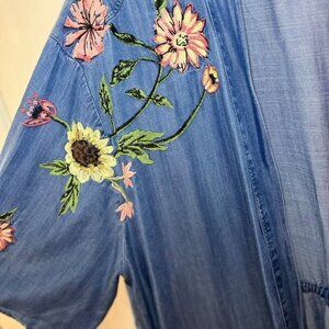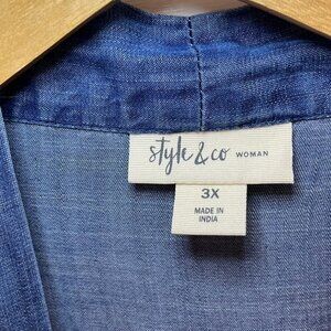 Style & Co Woman Plus-Size Blue Chambray Floral Embroider Cardigan/Duster Sz 3x