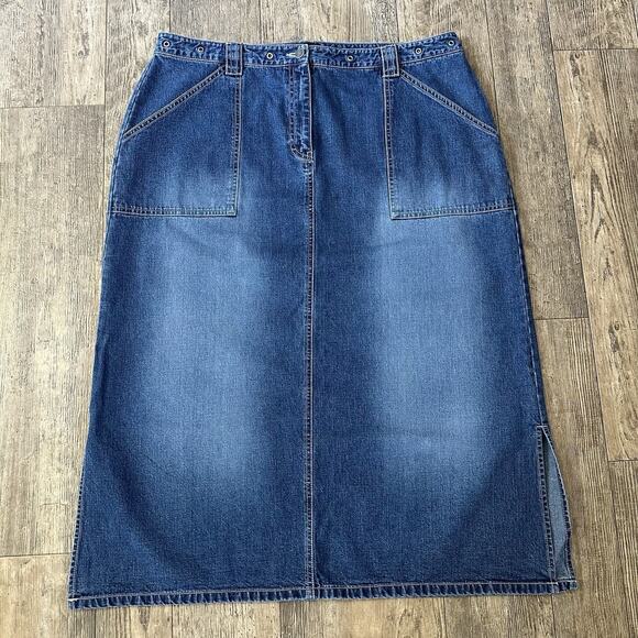 Style & Co Woman Size 18W Blue Jean Denim Skirt Long Modest Side Slits 38x33.5