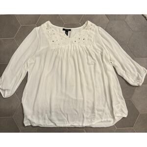 Style & Co Woman White Eyelet Peasant Top Plus 1X 100% Rayon