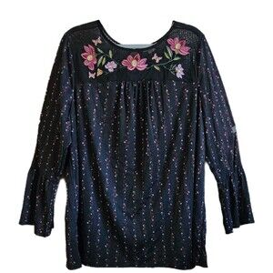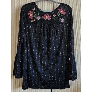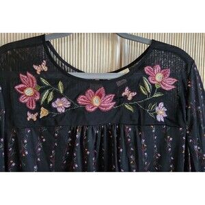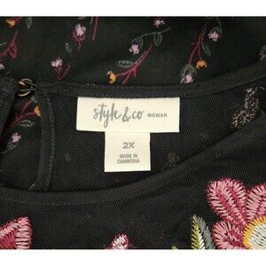 Style & Co Woman's Blouse Size 2X Black Sheer Floral Pullover Embroidery EUC
