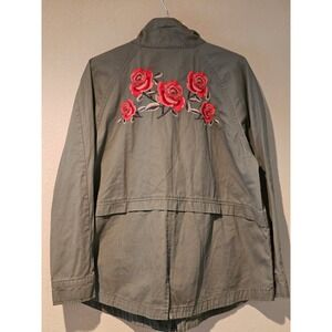 Style &Co Woman's Plus Size 2X Jacket 100% Cotton Embroidered Back Roses