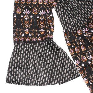 **Note: Black & Navy Blue colors, with bohemian style designs on it, bell sleeves, tassels tie, great top for any type of day! Sizing in pictures, please see all the pictures for details.