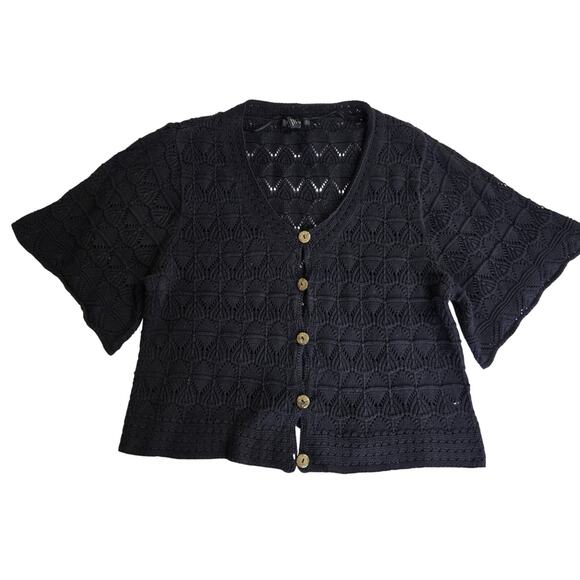 Style & Co Women Boho Whimsigoth Flare Sleeve Open Knit Crochet Cardigan Top XL