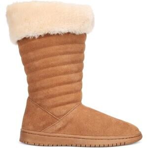 A quilted shaft topped in fluffy faux-fur makes a cozy, cold-weather statement in the Novaa genuine suede boots from Style & Co.