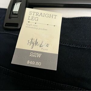 Style & Co. Women High-Rise Straight Leg Slimming Pocket Jeans Size 22W 42” L