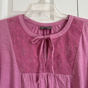 Style & Co. Women Pink Boho Velvet Bib Tops 3/4 Sleeve Cotton Peasant PLUS SIZE