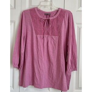 Style & Co. Women Pink Boho Velvet Bib Tops 3/4 Sleeve Cotton Peasant PLUS SIZE 0X,1X, 2X and 3X