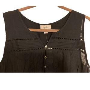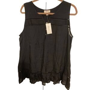 Style & Co Women Ruffle Hem Open Trim Tank Top Petite PXL Deep Black NWT Boho