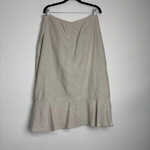 Style & Co Women’s 100% Linen Ruffle Hem Skirt Beige 18W Plus Midi Boho Lined
