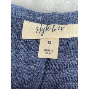 Style & Co Womens 1X Blue V-Neck Long Sleeve Sweater Top Viscose & Polyester