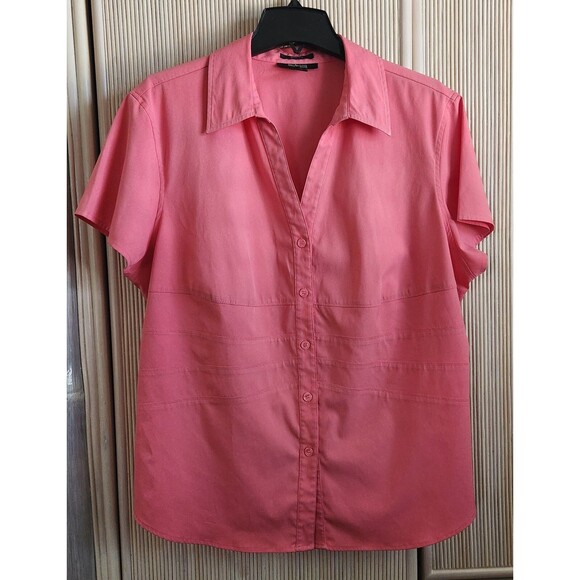 Style & Co Women's 20W Blouse Stretch Short Sleeve Button Up Salmon Pink NWT