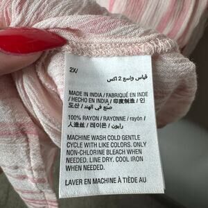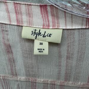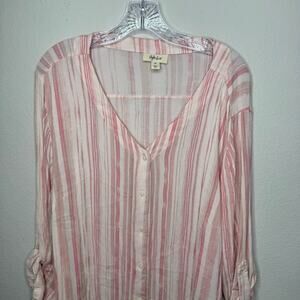 Style & Co Women’s 2X Pink White Striped Button Front Blouse Roll Tab Sleeve