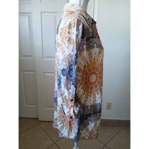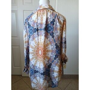 This Style & Co Women's Blouse Shirt in size small features a vibrant multicolor floral print, making it perfect for travel and casual occasions. The 3/4 roll tab sleeves and collared neckline add a stylish touch to this relaxed fit tunic, crafted from lightweight 100% rayon knit fabric. With a semi-sheer design and empire waist, this blouse is versatile for all seasons and offers a colorful and floral theme that is both classic and trendy. Made in China, this blouse is machine washable for easy care.