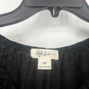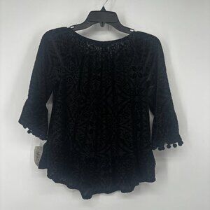 Style & Co Womens Blouse Velvet Off Shoulder Top 3/4 Trim Deep Black PP XS NWT