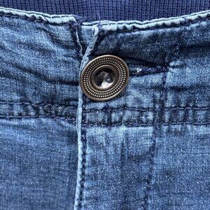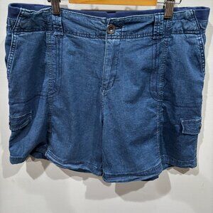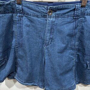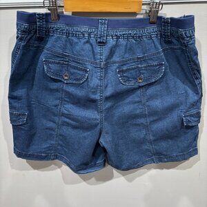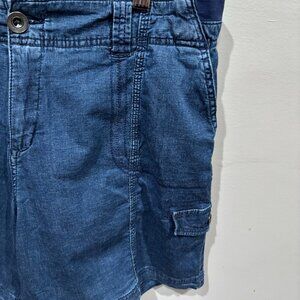 Casual blue cargo shorts. Features button closure and side pockets. Perfect for everyday wear.