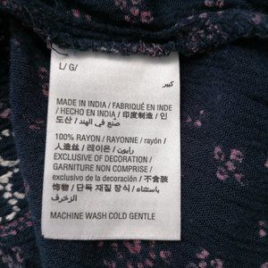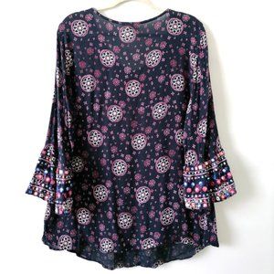 Style & Co Womens Blue Round Neck Bell Sleeve Embroidered Floral Blouse Size L
