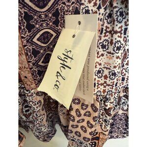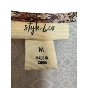 Style & Co Womens Bohemian Patchwork Floral Tunic Blouse M Multicolor Polyester/