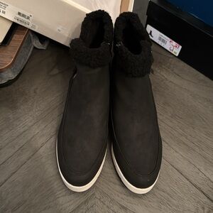 Manmade upper; polyester faux-shearling lining; manmade sole