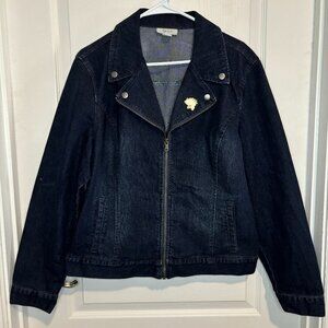 Style & Co Women's Dark Denim Full Zip Snap Collar Jean Jacket, Size Large