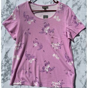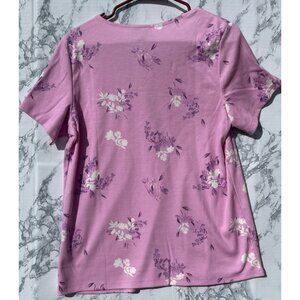 Style & Co Womens Floral Print Short Sleeve Tee OX Millie Pink Made In Indonesia