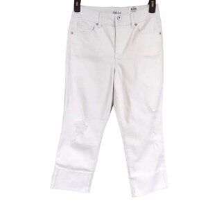 Style & Co Women's High Cuffed Destressed White Capri Jeans