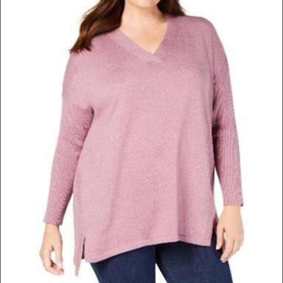 Style & Co. Womens High Low Tunic Blouse-Mauve-1X