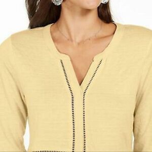 Style & Co Women's Long Sleeve V-Neck Mixed Woven Top Lemon Meringue Size S NWT