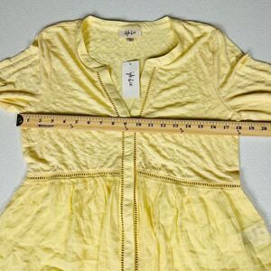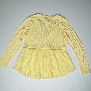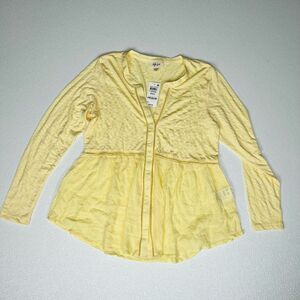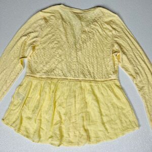 Style & Co Womens Button Up Long Sleeves V-Neck Mixed Woven Top Lemon Meringue Size Small. New with tags. Eyelet details carry throughout the center of this peasant-like top by Style & Co. giving it subtle romantic flair. Pair it with jeans, a cute pair of flats and you're ready to start your day! Relaxed fit Knit: polyester/rayon/spandex; woven: cotton/rayon Machine washable Imported