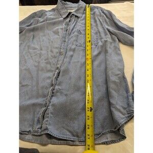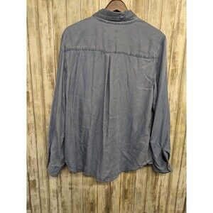 Style & Co Women's Lyocell Chambray Button Up Shirt Blue Roll Tab Sleeve Large