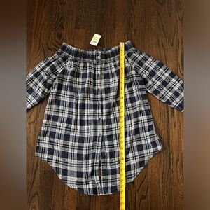 Style & Co. Women’s M “Off the Shoulder” Indiana Blue Plaid Button-Down - NWT!