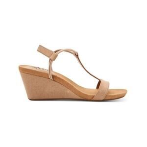 Style & Co Women's Mulan Wedge Open-Toe Sandals, Taupe Microsuede Size 6M