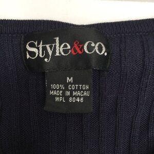 Style & Co Womens Navy Blue Cardigan Sweater Zipper Zip Small Cable Knit Size M