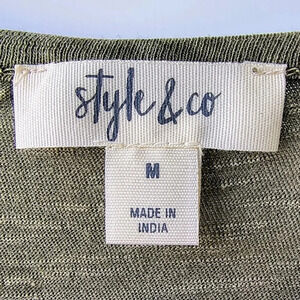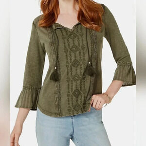 Style & Co Women's Olive Boho Peasant Cottage Core Top with Bell Sleeves, M