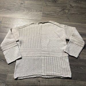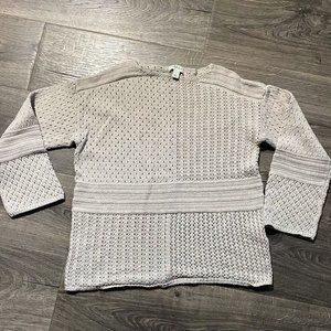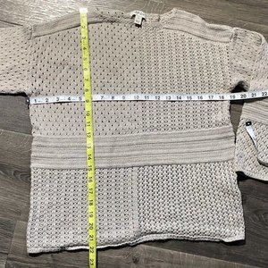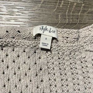 Style & Co Womens Patchwork Stitch Crocheted Sweater Tan Size Small