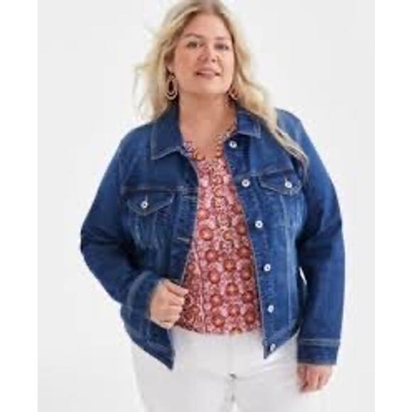 Style & Co Womens Plus Denim Jacket Classic Jean Jacket Size 22
