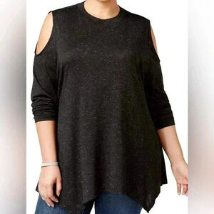 Style & Co. Women's Plus Sparkle Cold Shoulder Party Pullover Top Black Size 1X