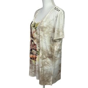 Style & Co. Women’s Pullover Top Sz 1X Multi Colors Graphic Studding V-neck