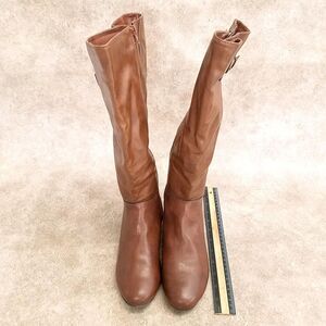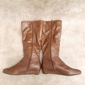 Style & Co. Womens Rainne Size 9 Tan Low Wedge Knee High Riding Boots
